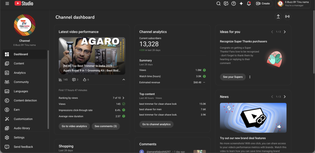 Worked on YouTube SEO for trimmer-related videos to improve search visibility.