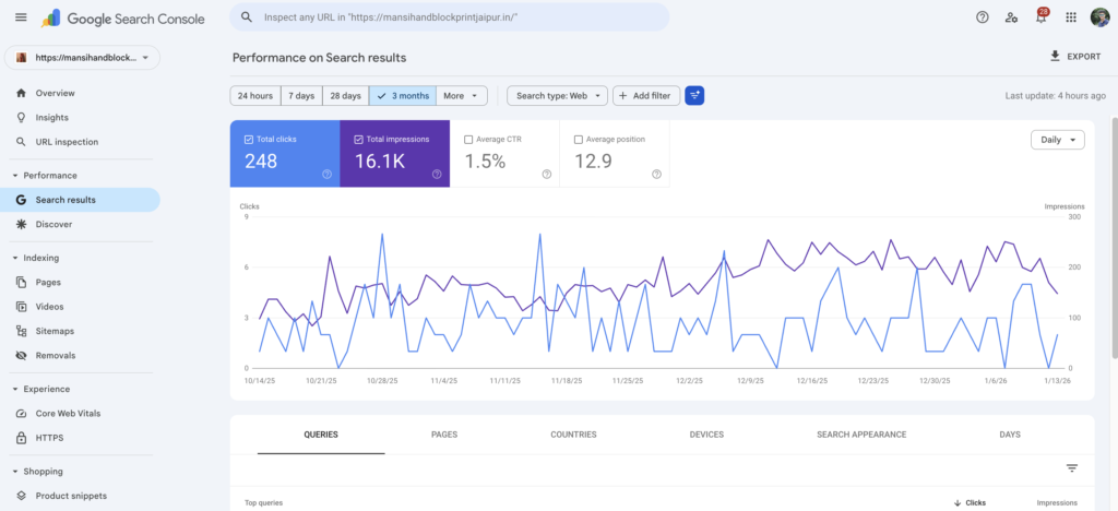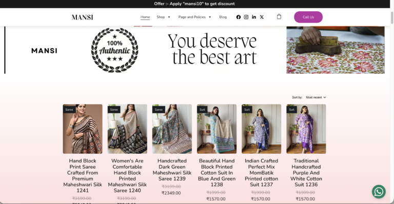 Worked on On-Page SEO to optimize product pages related to hand block printed sarees.
